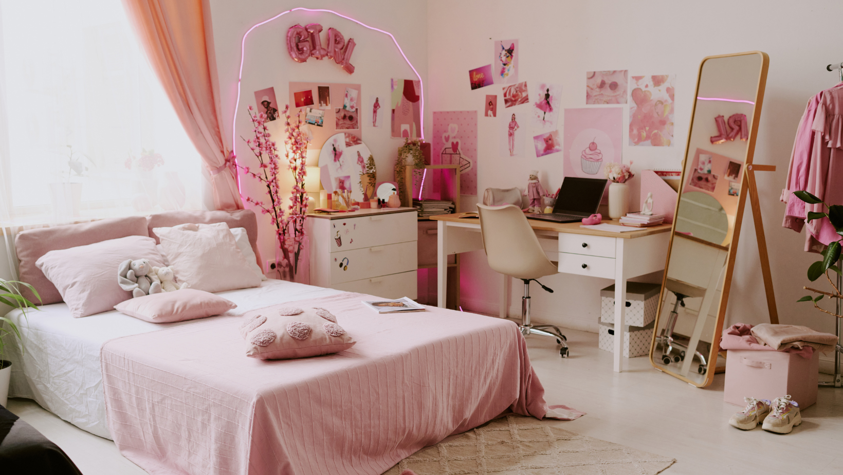 La chambre aesthetic Y2k, c’est celle des années 2000 par excellence. Abréviation de « year 2000 », ce style se caractérise par des inspirations futuristes, dues au passage dans un nouveau millénaire. Paillettes, couleurs flashy, néons, accessoires rétro des années 2000 sont des incontournables de de la tendance Y2k.