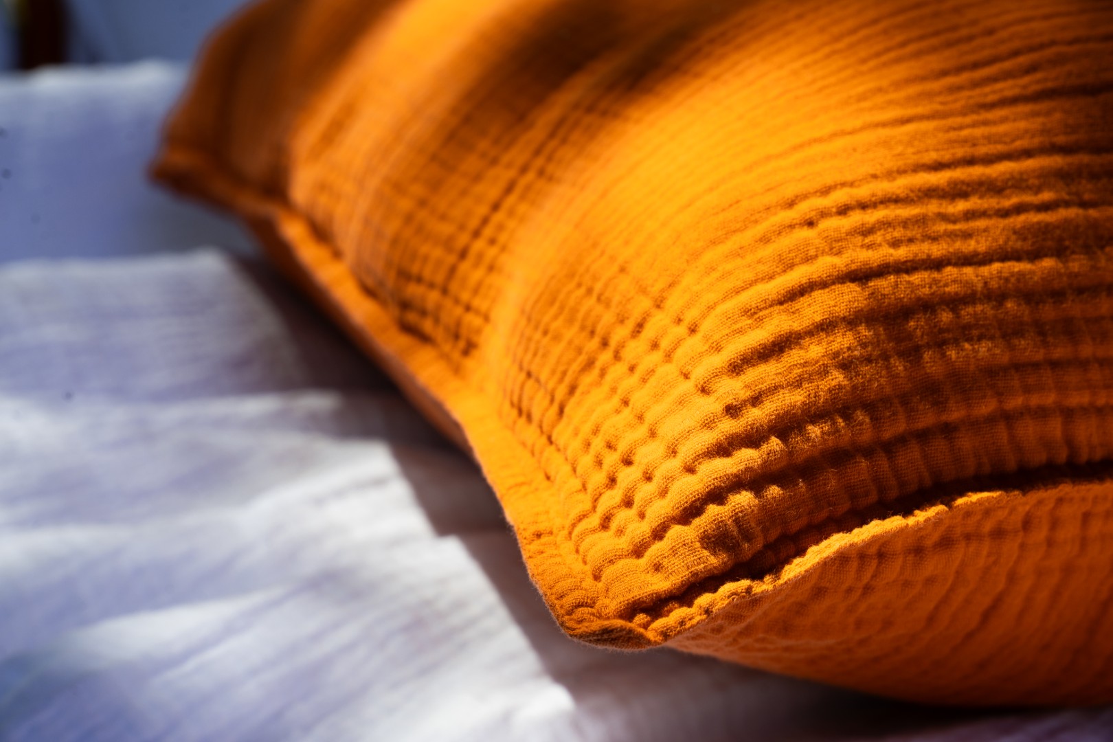 - Housse de couette collection Gaze de coton et sa couleur rouille pour apporter de la chaleur à votre chambre.