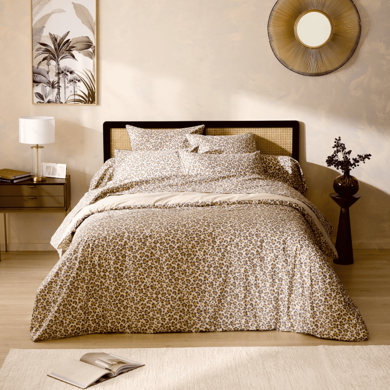 Apportez une note sauvage et tendance à votre chambre avec ce drap de lit en percale de coton peigné. Son motif léopard dans des tons naturels de beige, marron et anthracite s’harmonise facilement à toutes les décorations. Tissage 80 fils/cm² pour une percale douce, résistante et respirante. Fabrication française à Cambrai.