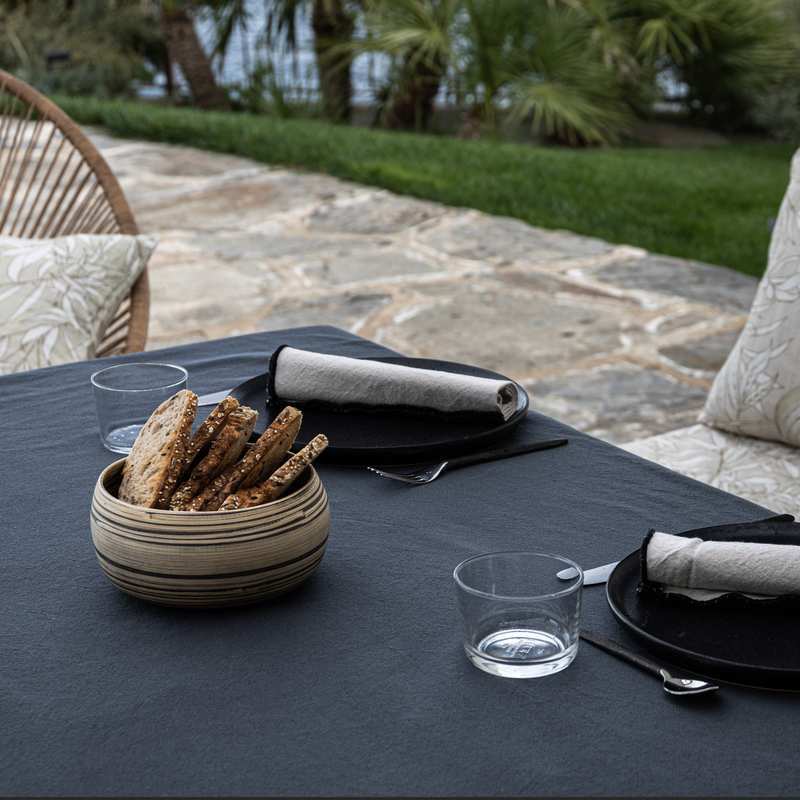 Linge de Table 100% Coton Lavée , avec finition noire.