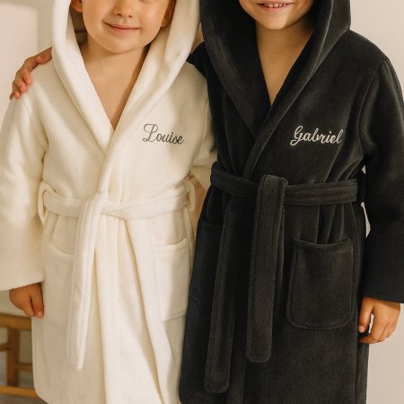 Superbe peignoir de qualité, bien moelleux et absorbant. Il taille grand, les manches sont assez longues pour les grands. La broderie personnalisée est très jolie. Livraison rapide même à l'étranger.