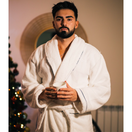 Découvrez la Nouvelle Collection de Peignoirs de Bain de qualité exceptionnelle avec un gonflant et un toucher extra ordinaire. Les peignoirs de bain sont disponibles en couleur avec finition passepoil raffiné blanc ou en peignoir blanc + passepoil de couleur. Toucher exceptionnel pour ce peignoir ultra moelleux 100% coton 500g/m2, zéro twist ! Peignoir...